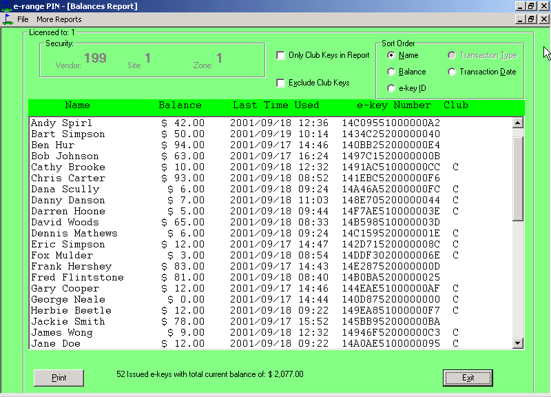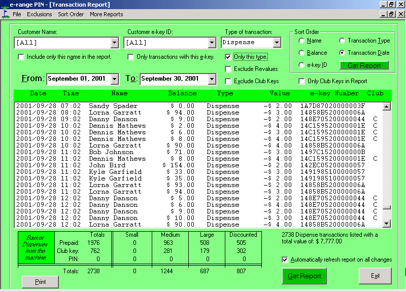 Sort by name, account, date, balance, type of transaction. Exclude or include only those employees or customers you would like to see.