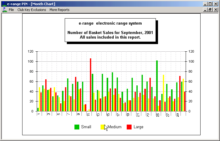 A summary box displays how many of each basket size was sold during the time